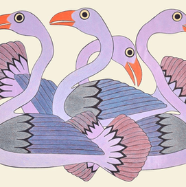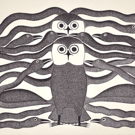 Kenojuak’s work exudes a bright vibrant energy with a touch of whimsy, all wrapped in a pure wonder for the natural world. Nearly every Cape Dorset Annual Print Release since 1959 and until her death in 2013, has featured work by Kenojuak. Her images have been exhibited throughout Canada, United States, France, Germany, United Kingdom, Switzerland, Czech Republic, Sweden, South Korea and Japan among other countries. Her work is in numerous public and private collections internationally.